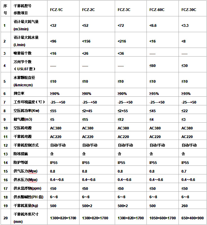 微米級(jí)干霧抑塵裝置技術(shù)參數(shù)
