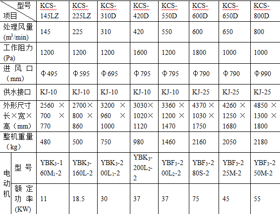 礦用濕式除塵風(fēng)機(jī)主要技術(shù)參數(shù)表: