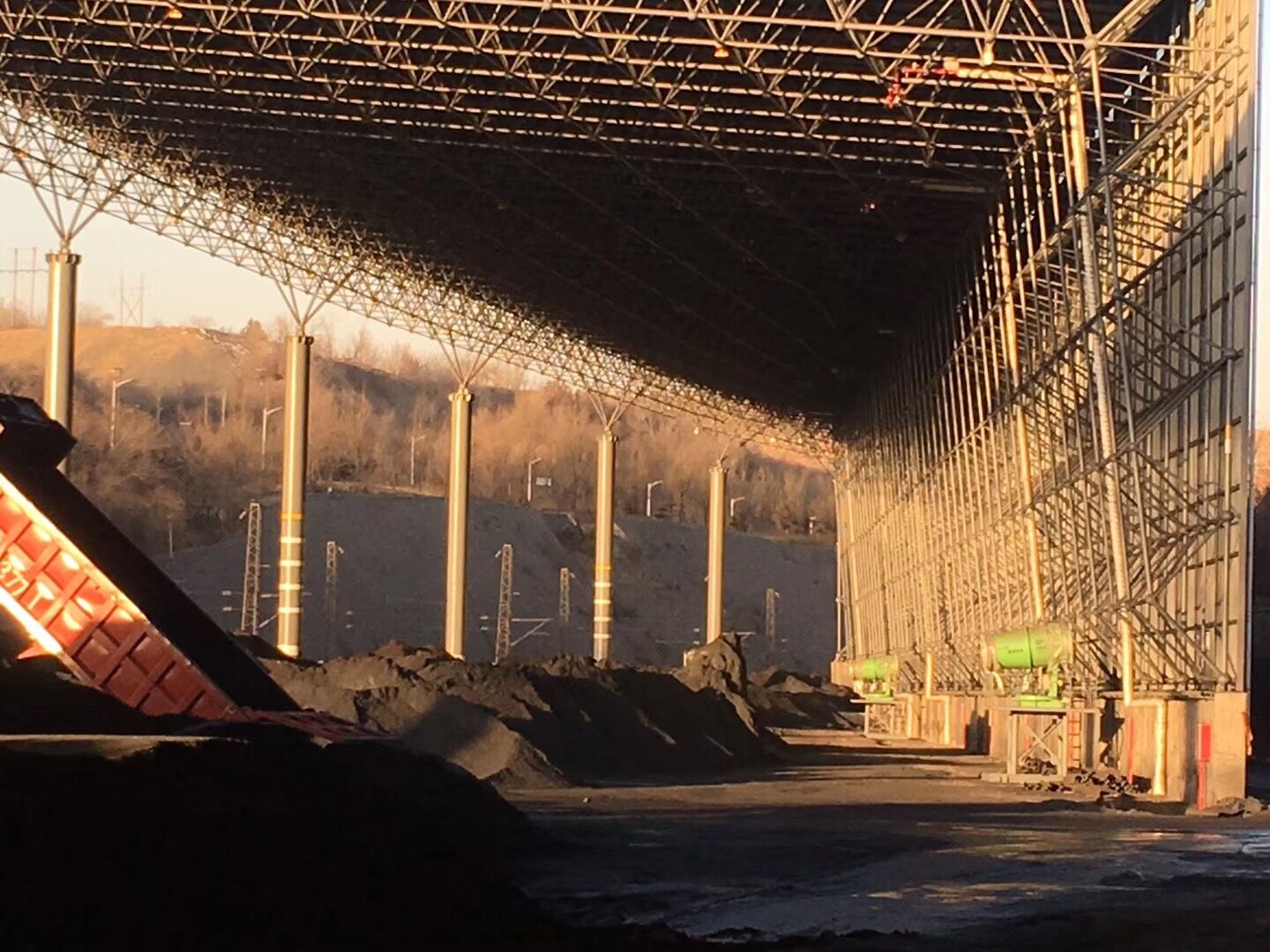 項目地位于山西省陽泉市經(jīng)濟技術(shù)開發(fā)區(qū)下五渡,陽泉天成煤炭鐵路集運有限公司儲煤棚,煤場有南北兩個貨場儲煤棚,南貨場儲煤棚使用8臺FCK-HB80防寒防爆型智能粉塵控制器和2臺BL/FCK-HB100防寒防爆型智能粉塵控制器全方位噴霧降塵除塵。北貨場儲煤棚使用12臺BL/FCK-HB50“博藝”牌防寒防爆型智能粉塵控制器全覆蓋噴霧抑塵。